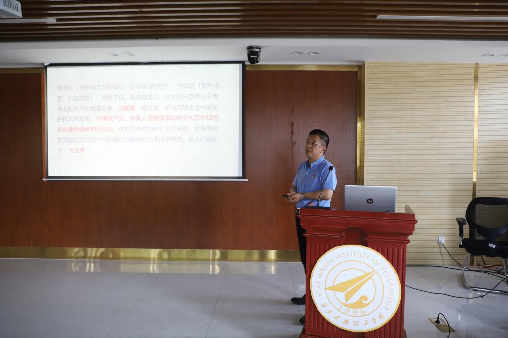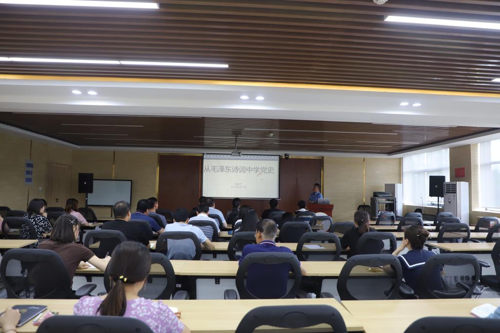6月1日下午,副校长王斌宁以“从毛泽东诗词中学党史”为主题,为部分师生党员作了一场党史学习教育专题党课。学校办公室党支部、党委学生工作部党支部、后勤安保部党支部、艺术与设计学院教工和学生党支部及部分思政课教师等50余名党员参加。