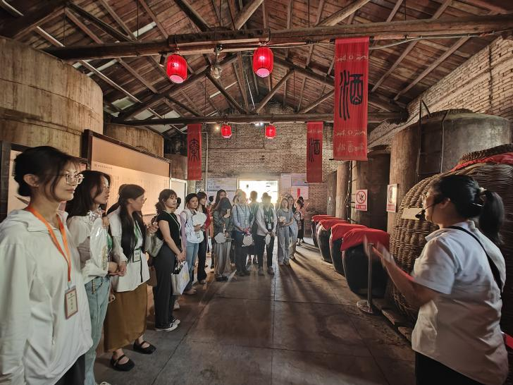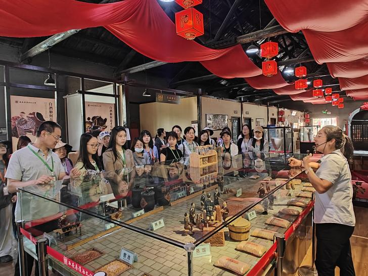 在西安秦汉酒文化园,党员教师们沉浸式感受了中国酒文化的厚重底蕴。园区以秦汉文化为脉络,完整展现了传统酿酒工艺从原料筛选到窖藏陈酿的全流程,教师们驻足“老五甑”工艺展示区,认真听取工作人员讲解非遗技艺的传承故事,通过“时光酒塔”的互动展陈,回溯了酒文化在历史长河中的演变。观酒海、闻历史、传文化、品美酒,享受独特的西安味道在唇齿间绽放,让教师们在轻松愉快的氛围中感受酒文化的独特魅力。教师们深刻体会到“一厂一味道”的匠心坚守,以及企业通过“酒旅融合”活化工业遗产的创新实践。这种将文化自信融入产业发展的模式,启发了教师们将传统文化如何融入课程思政建设。