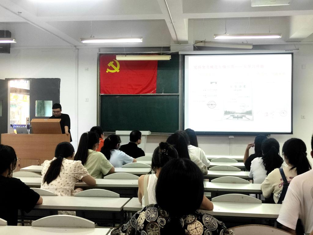 为进一步加强毕业生党员党性教育,增强青年党员的时代责任感和使命感,激励他们在未来的工作岗位上充分发挥党员的先锋模范作用,6月23日,经济与管理学院在培德楼112教室召开2022届毕业生党员教育大会,本次会议采取线上线下相结合的形式开展,学院党委书记兼行政副院长何文举、副书记冯纪潮、学生第一党支部书记罗夫惠和在校的毕业生党员参加了会议,会议由学生第一党支部书记罗夫惠主持。