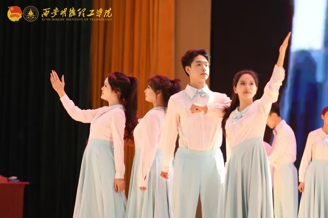 大学生艺术团带来的歌舞剧《乐燃五四・青春之城》则生动演绎了青年的活力与担当,赢得现场阵阵掌声,充分展现了明德青年朝气蓬勃的精神风貌。