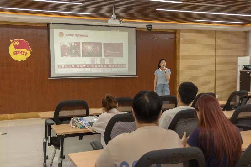 团课上,校团委乔建、经济与管理学院团工委书记朱妍带领全体团员学习党史,见证百年壮丽篇章,重现党的光辉历程,感受新中国的发展,激发同学们的爱国爱党情怀。