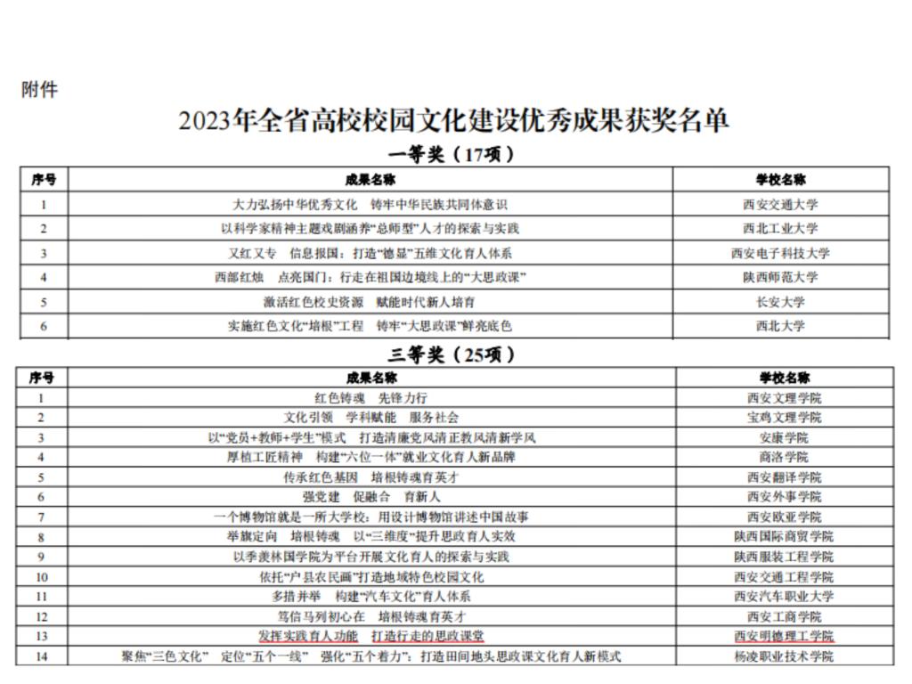 学校获2023年陕西省高校校园文化建设优秀成果三等奖