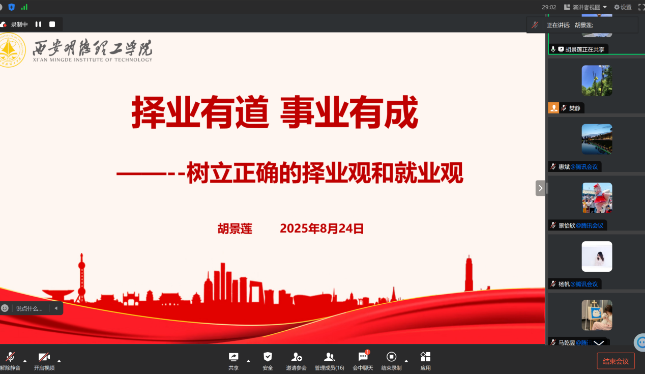 为深入贯彻落实立德树人根本任务,遵循教育教学规律,扎实推进马克思主义学院“三磨机制”磨课活动相关部署,8月24日下午,德育教研室通过线上平台组织召开了以“深耕教学设计,赋能课堂提质”为主题的磨课研讨会,教研室全体教师参加。本次会议聚焦思政课教学质量提升与育人实效增强,依托集体智慧协同研讨,致力于夯实教学设计基础,打造具有德育特色、深受学生欢迎的高质量课堂。