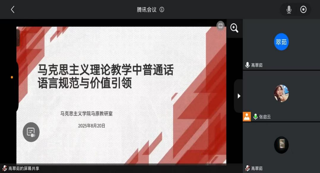 其次要以普通话语言规范筑牢理论教学“准确性根基”。教师们应注重梳理“辩证唯物主义”“剩余价值”等核心概念的规范发音、精准表述,确保教师授课时术语无偏差、逻辑无断层。