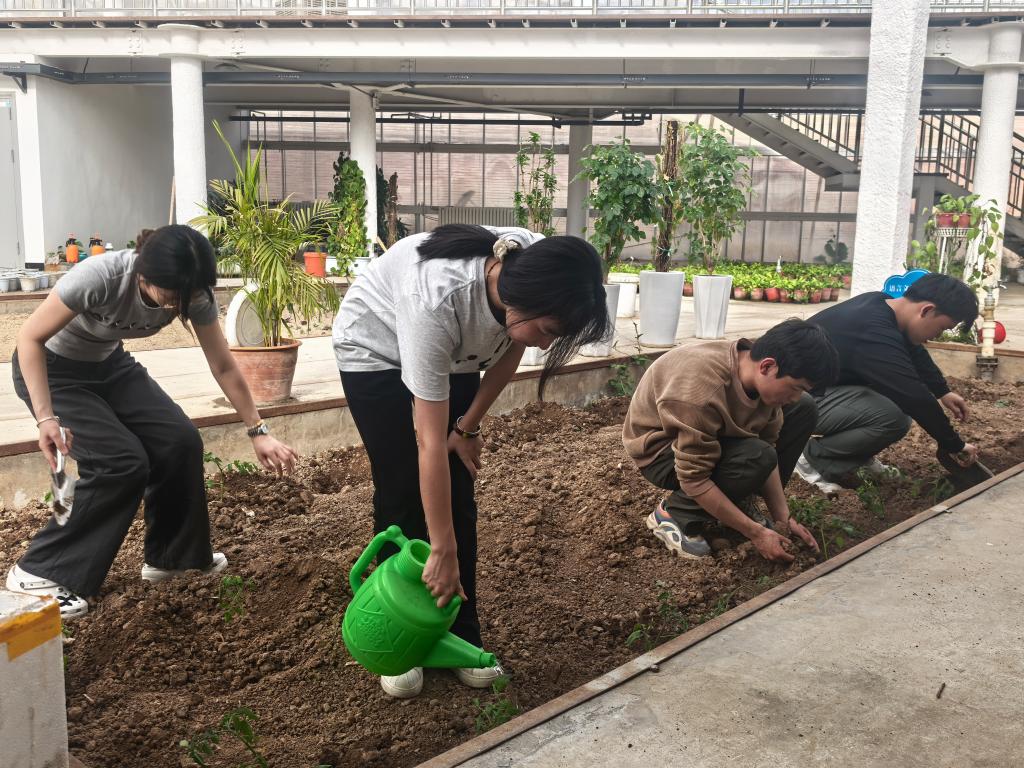 为弘扬劳动精神,培养学生热爱劳动的习惯,4月7日下午,马克思主义学院耕耘社在校内劳动实验基地组织开展了“播种希望,收获成长”幼苗种植实践活动。社团成员在指导老师的带领下,亲手栽种黄瓜苗和西红柿苗,体验劳动的快乐与意义。