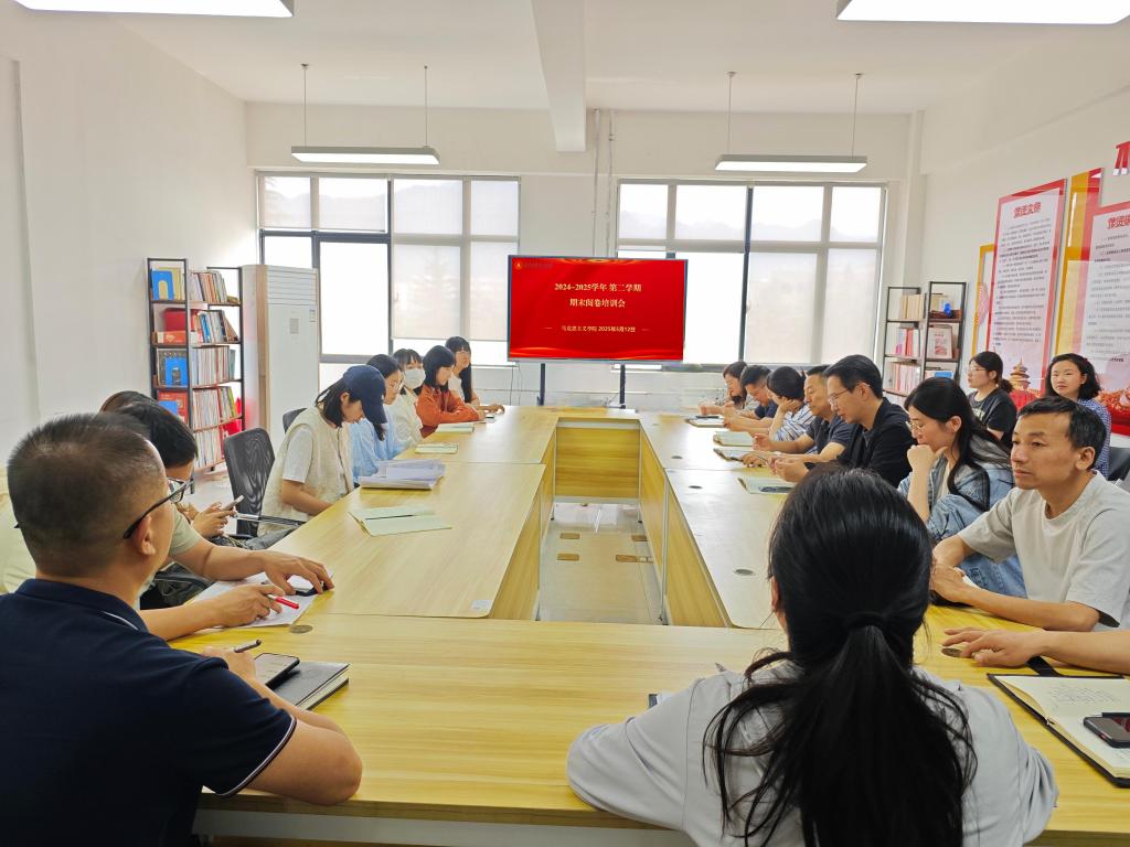 为确保《毛泽东思想和中国特色社会主义理论体系概论》课程考试评分的公平、公正与科学,5月12 日中午,马克思主义学院在明志楼南 306组织了该课程组全体老师参与的阅卷培训会。此次培训会旨在统一评分尺度,提升阅卷质量,为准确评估学生学习成果奠定坚实基础。