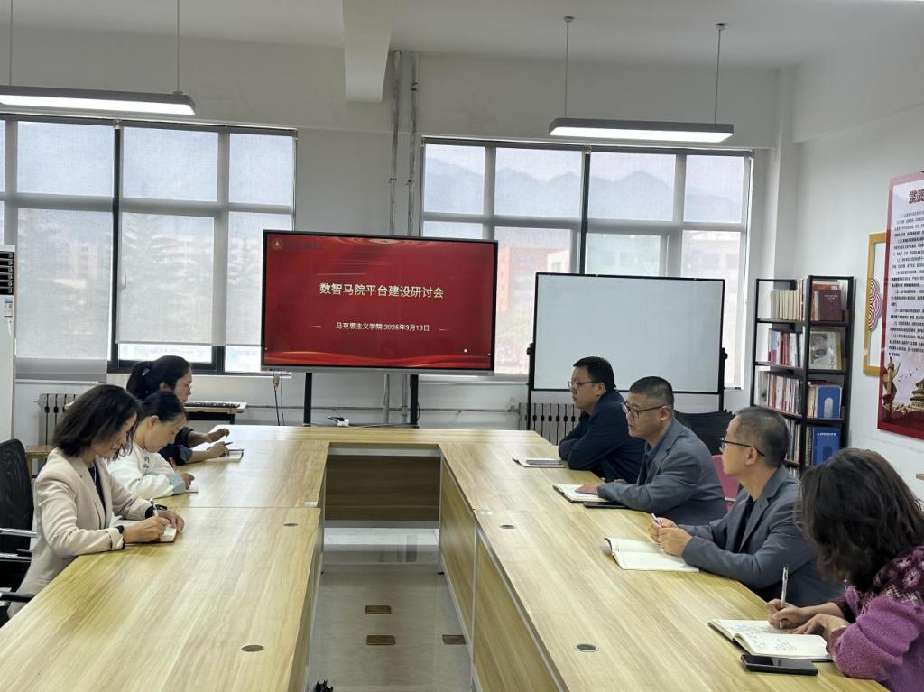 为深入贯彻落实教育部关于教育数字化战略行动的决策部署,加快推进马克思主义学院信息化建设,2025年3月13日,马克思主义学院在明志楼南306会议室组织召开“数智马院”平台建设专题研讨会。学院党委书记王君涛、副院长惠斌及各教研室主任参加会议,共商平台建设方案。会议由副院长惠斌主持。
