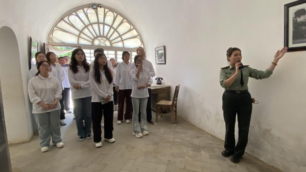枣园革命旧址的讲解,进一步深化了师生对革命历史场景与精神传承的理解。老一辈无产阶级革命家就在这里,为中国革命的前途殚精竭虑,起草重要文献、谋划战略方针,那些看似平凡的角落,都曾见证过影响中国历史进程的决策与思考。随后,师生前往为人民服务讲话台进行枣园小课堂《张思德:为人民服务的楷模》学习活动,再通过师生齐诵读《为人民服务》深切感悟为人民服务的宗旨内涵。