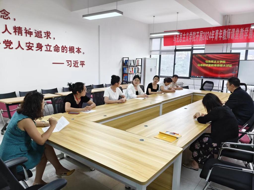为深入贯彻落实习近平新时代中国特色社会主义思想,进一步提升教育教学质量,加强思想政治理论课的建设与发展,2024年7月10日下午,马克思主义基本原理教研室组织开展了教育思想大讨论活动。此次活动旨在凝聚共识,创新教学方法,推动思政课教育教学改革向纵深发展。本次会议由教研室主任张启云主持,马原教研室的全体教师参加。