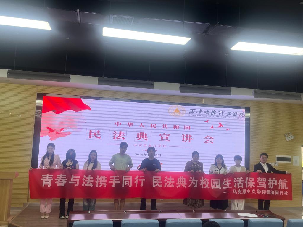 为深入贯彻落实全面依法治国战略部署,提升全校师生的法治观念和法律素养,马克思主义学院于2025年5月13日-15日举办了“民法典宣传月”系列活动之民法典宣讲活动。