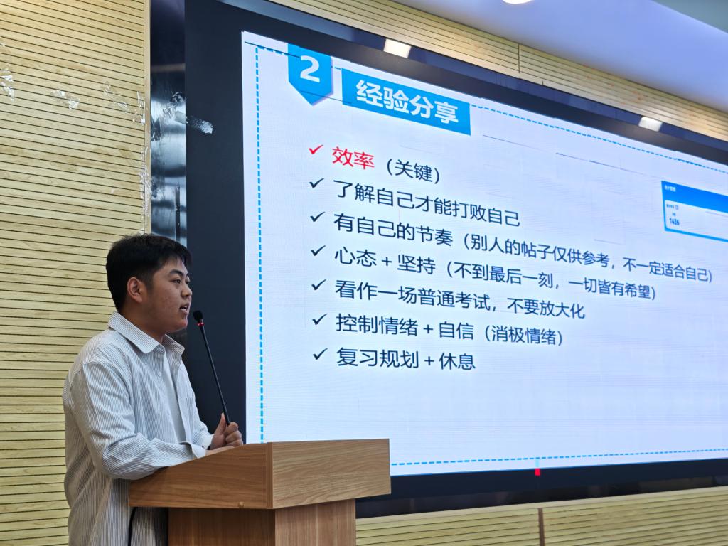 这些分享共同呈现了“规划-实践-反思”的成长闭环,既有考研深造的专业纵深,又有竞赛服务的横向拓展,为不同发展需求的同学提供了可复制的经验模板。在互动问答环节、同学们就学习上的困惑、职业规划的迷茫、社会实践的难题等方面与学长学姐们进行交流,学长学姐们耐心解答并且还举例说明,让同学们受益匪浅。