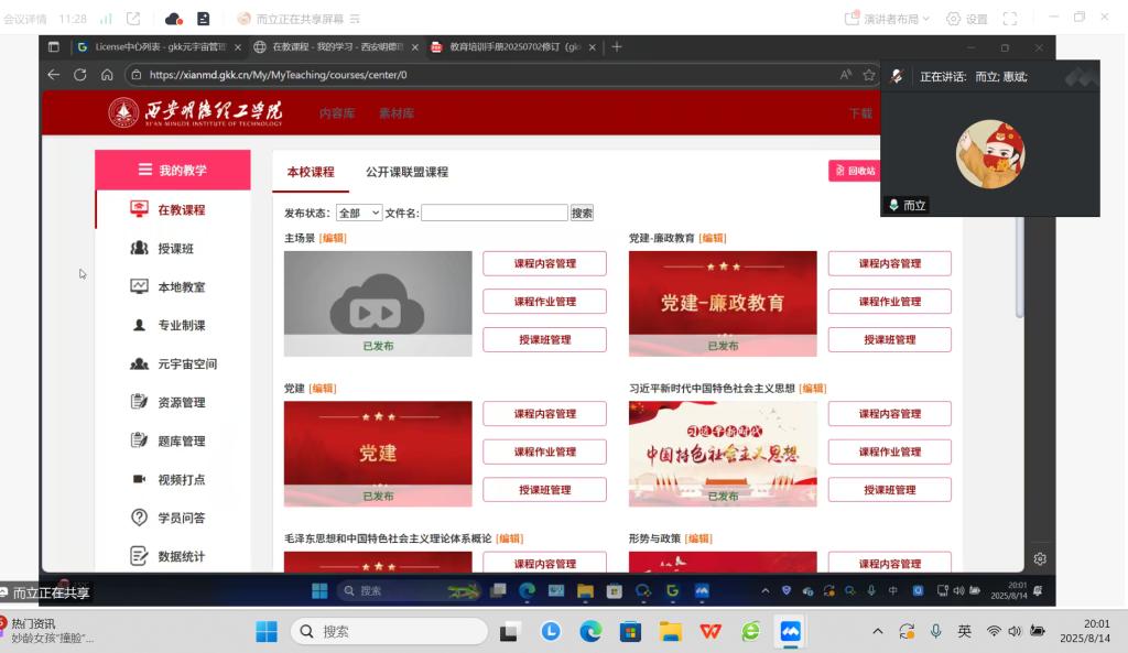 为进一步提升思政教育教学质量,推进“立德树人”根本任务的落实,马克思主义学院于8月14日晚上8点在线上举行了“立德树人”虚拟仿真思政课体验中心项目第一轮培训。本次培训由教学副院长惠斌主持,学院全体教师参加,旨在为下学期即将投入使用的虚拟仿真思政课体验中心做好充分准备。