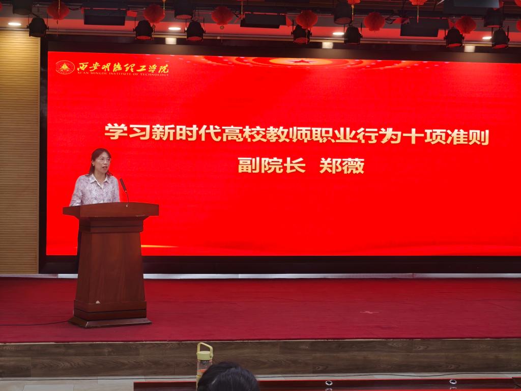 随后,郑薇副院长对新时代高校教师职业行为十项准则进行了全面解读,让教师们明确了在教育教学过程中应遵循的基本规范,时刻提醒自己坚守师德底线,规范从教行为。