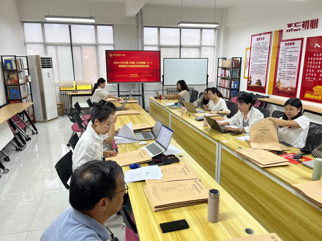 为进一步提升教学质量,强化教学过程管理,确保考试评价的科学性与公正性,大学物理教研室于2025年8月29日上午开展了 2024 - 2025 学年第二学期《大学物理(1)》试卷第五次自查互查及整改活动。此次活动由物理教研室主任贺颖牵头,全体承担《大学物理(1)》教学任务的教师共同参与。