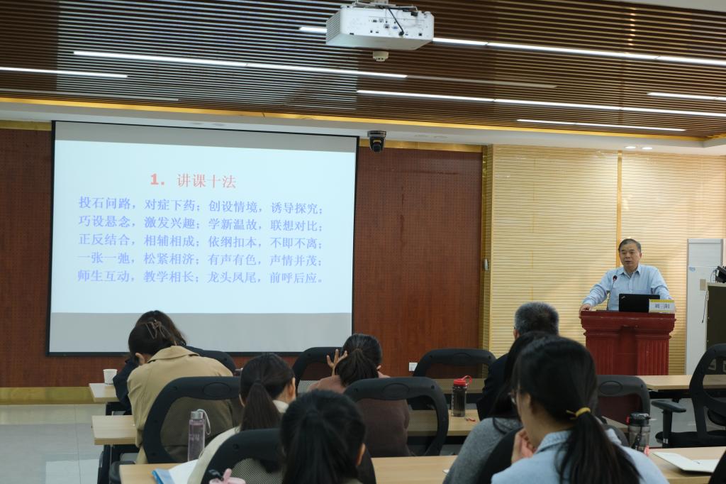 最后,刘三阳教授借鉴多位名家大师的启示,总结了教学中的“十个关系”“十重十轻”“讲课十忌”“讲课十法”“开场十例”“结尾六诫”等先进教学经验并寄语教师:“学无止境有佳境,教有良法无定法”,希望学院教师牢记教书育人初心使命,努力练就过硬的教学本领,为培养拔尖创新人才贡献自己的力量。