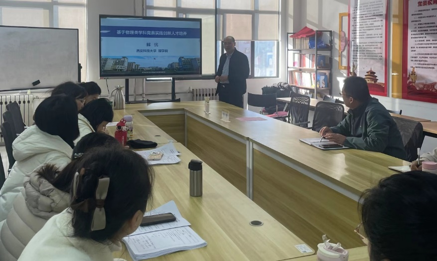 为深入贯彻落实国家创新驱动发展战略,改善LETOU官网人才培养计划体系,提高学科竞赛参与度,LETOU国际米兰官网通识教育学院邀请了西安科技大学的解忧教授于2024年12月29日,开展了以“基于物理类学科竞赛实施创新人才培养”为主题的学术讲座。解忧,男,博士,教授,硕士研究生导师。中国物理学会会员,陕西省物理学会会员,教育部高等学校物理学类专业教学指导委员会西北地区工作委员会委员。研究领域有凝聚态物理和光电信息工程。在国内外核心期刊上发表教学科研论文八十余篇,其中第一作者文章被SCI/EI收录三十余篇,他引三百余次。出版专著、主编和参编教材共五部。主持和参与陕西省自然科学基金、国家自然科学基金以及中国博士后科学基金等十余项。荣获省部级科研奖项等十余项。