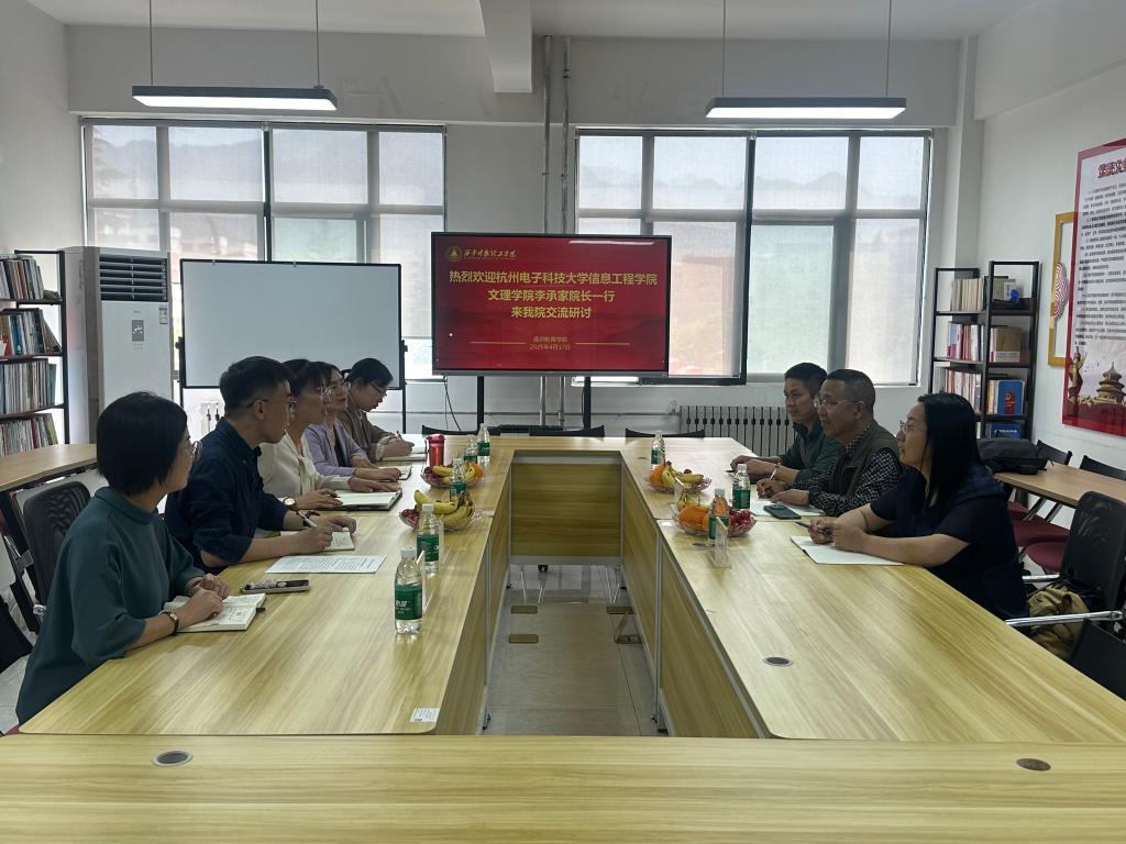 4月17日下午,杭州电子科技大学信息工程学院文理学院执行院长李承家教授一行3人来访LETOU官网通识教育学院,对学科竞赛、美育教育等方面的工作展开座谈交流。座谈会在明志楼306会议室举行,通识教育学院副院长郑薇、办公室主任符雅诺、数学教研室主任李妮、教师代表张华、徐凯参加了座谈会。