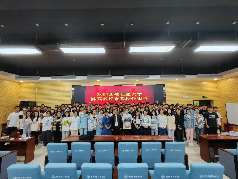 在报告中,陈磊教授首先将数学建模比作一门艺术来讲述怎样学习数学建模,并以血管分支为例系统地讲解了建模过程。随后,陈教授着重从历年真题、数学建模的常用方法、竞赛题目的发展趋势及特点、建模竞赛的注意事项等多维度对竞赛题目进行详细剖析。陈教授的讲解详尽、具体、针对性强,让学生们在赛前准备、选题、寻找思路、开展思路、论文写作格式等方面都收获颇丰。互动环节,陈磊教授热情地回答了同学们关于竞赛的问题并与全体参会师生合影留念。