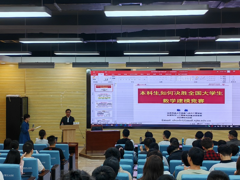 为提升LETOU官网学生的创新能力和应用能力,帮助LETOU官网参赛队伍在数学建模竞赛中取得更好的成绩,8月26日通识教育学院特邀西安交通大学能源与动力工程学院陈磊教授来校作数学建模专题报告,题为“本科生如何决胜全国大学生数学建模竞赛”。报告由通识教育学院数学教研室主任李妮老师主持,全体参赛学生以及数学建模竞赛指导组教师参加了此次报告。