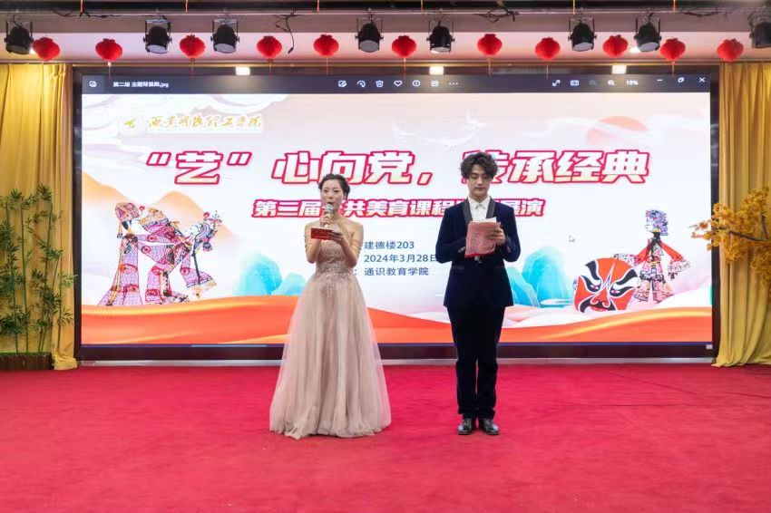 2024年3月28日晚19点,通识教育学院在建德楼203室举办了艺”心向党,传承经典——第二届公共美育课程汇报展演晚会。党委学生工作部副部长童杨梓、各二级学院党委书记、副书记,通识教育学院副院长郑薇,人文与艺术教研室全体教师、学生代表300余人参加了本次展演活动。