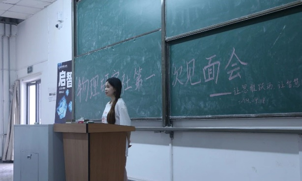 活动伊始,各位指导老师上台发言,分享了自己在物理学领域的研究经验和心得,展现了扎实的专业知识以及严谨治学的教学态度,并且鼓励同学们勇于探索、敢于创新,体现了关爱学生、关心学生发展的责任感。同时,也强调了科研过程中团队协作的重要性,希望同学们能够珍惜这次机会,与志同道合的伙伴们一起努力,共同为社团的发展提供智慧,为个人的成长付出努力。其中,物理教研室主任贺颖老师介绍了师资力量和支持社团的初心,表示非常高兴师生能共聚一堂,对物理研究社的创立表达了高度肯定,同时向学生传达了师资力量与资源的强大底气,也表达了对社团发展充满信心。“相信在大家的共同努力下,物理社团能够更好地与大学物理课堂结合,第一课堂与第二课堂融合起来,共同促进学生的物理学习和实践。”