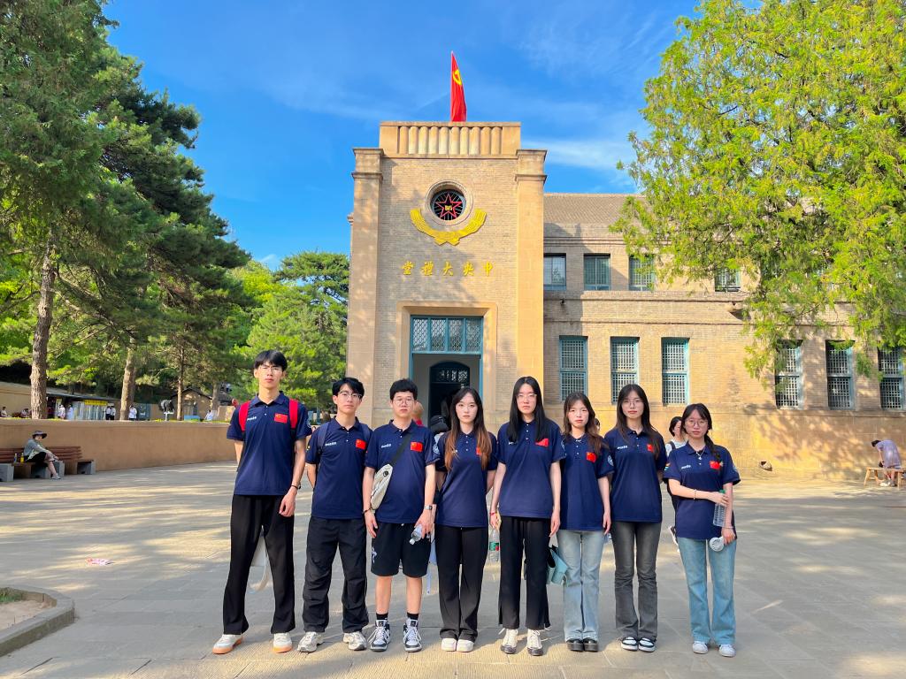 随后,实践队成员们步入中共七大大礼堂,这里曾是中国革命历史的重要转折点。站在这片神圣的土地上,队员们仿佛能听到历史的回响,感受到那份对革命胜利的坚定信念和对未来中国的美好憧憬。中共七大的胜利召开,不仅为中国革命指明了方向,更向世界宣告了中国共产党的成熟与坚强。