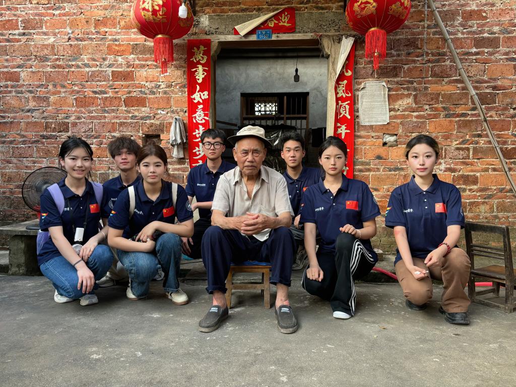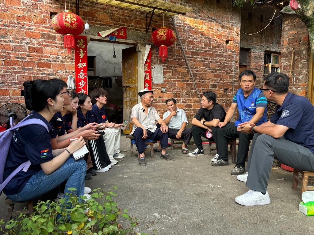 紧接着,实践队伍前往蒋老爷爷家。蒋老爷爷是本村最为了解当时红军夜渡大坪渡口的老人,作为一名退伍老兵,他从小就耳濡目染,听着红军渡江的故事长大。在风华正茂之时,他毅然投身军旅,投身于新疆建设的伟大征程。十三年的军旅生涯更让他对红军充满敬意。所以,蒋老爷爷是怀着激动的心情跟实践队员们讲述着渡江故事。在蒋老爷爷家门前,实践队成员满怀崇敬与期待,静心聆听他讲述当年红军渡江的故事。“他们当时哩,带着伤员,背着渡江是很困难的,所以,就有红军来到我们村把我们的门板拆下来,抬着伤员渡江”“当时红军们哩,是晚上渡的江,但是除了向村里的人借走门板,他们都没有去打扰村里人睡觉”他详细地描述着红军战士们为渡河所做的准备以及他们与当地百姓之间的深情厚谊。为躲避敌方侦查而抢渡湘江的惊心场景,那些感人至深的军民互助画面,仿佛一幅生动的历史画卷在实践队员眼前徐徐展开。
