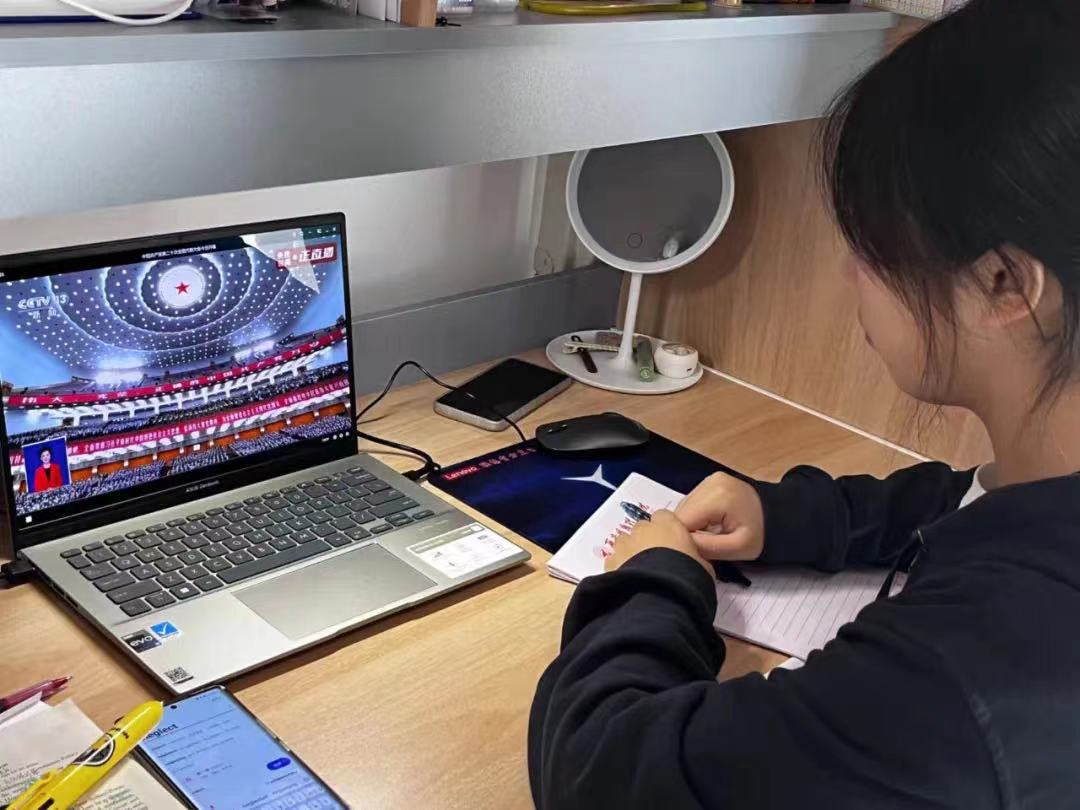 全校各会场师生以饱满的热情和昂扬的精神,认真聆听、仔细记录,气氛热烈而庄重。大家一致认为:习近平总书记的报告气势恢弘、大气磅礴、振奋人心,是“中国之治”的时代宣言、马克思主义的理论飞跃、亿万人民的幸福指南。党的十九大以来的五年,是极不寻常、极不平凡的五年,以习近平同志为核心的党中央统筹中华民族伟大复兴战略全局和世界百年未有之大变局,就党和国家事业发展作出重大战略部署,弘扬伟大建党精神,自信自强、守正创新,踔厉奋发、勇毅前行,团结带领全党全军全国各族人民有效应对严峻复杂的国际形势和接踵而至的巨大风险挑战,以奋发有为的精神把新时代中国特色社会主义不断推向前进,攻克了许多长期没有解决的难题,办成了许多事关长远的大事要事,推动党和国家事业取得举世瞩目的重大成就。