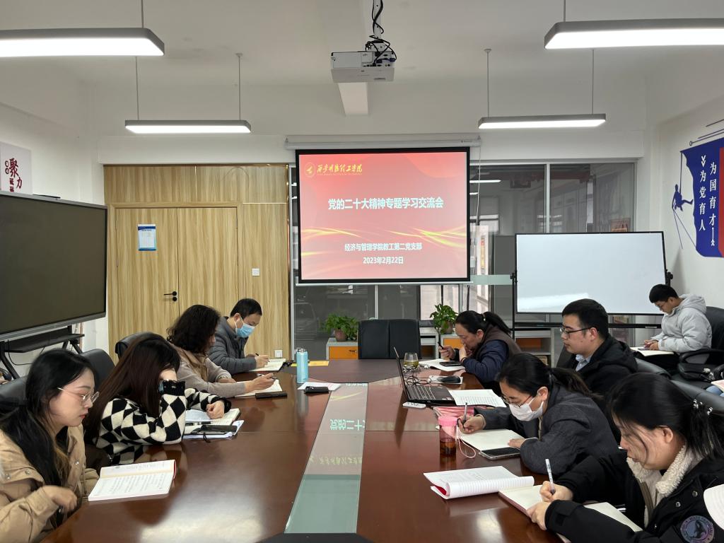 为认真学习宣传贯彻党的二十大精神,将教工党员的思想和行动统一到党的二十大精神上来。2月22日下午,经济与管理学院教工第二党支部在明志楼北606会议室开展党的二十大精神学习研讨,学院党委书记兼行政副院长何文举、副院长雷娟、金融产业学院副院长刘敏及支部党员参加了学习研讨。
