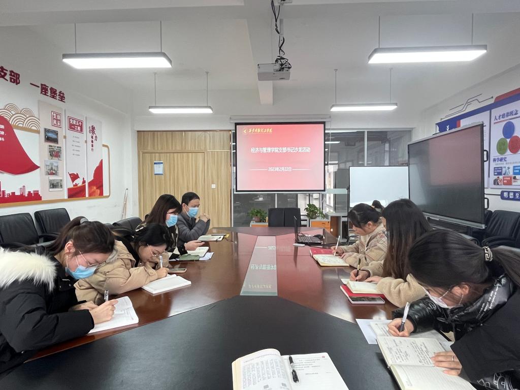 为深入贯彻落实党的二十大精神,增强基层党组织的政治功能和组织功能,提升学生党支部书记的理论素养和业务水平。2月22日下午,经济与管理学院在明志楼北606开展学生党支部书记沙龙活动。活动由学院党委书记兼行政副院长何文举主持。