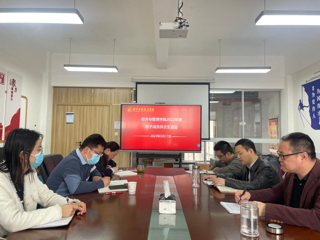 根据《关于开好2022年度二级单位领导班子民主生活会的通知》,经济与管理学院于3月17日下午在明志楼北606召开2022年度领导班子民主生活会。学校党委委员、党委组织宣传部部长高超同志,学院领导班子,教工党员和群众代表参加了会议,会议由学院党委书记何文举同志主持。