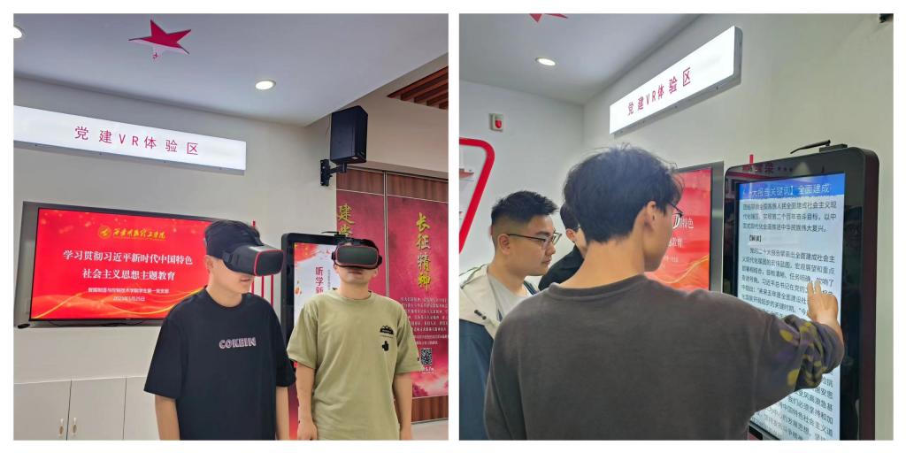集中学习后,支部成员利用智慧党建区VR及党建一体机进行沉浸式、互动性的体验学习,更加深切地感悟党的艰辛历程,感受红色力量,凝心聚力,锤炼党性,提高素养。