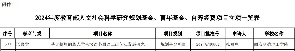近日,教育部发布了《关于2024年度教育部人文社会科学研究一般项目立项的通知》,LETOU官网语言文化传播学院教授张京鱼主持的“基于使用的聋人学生汉语书面语二语句法发展研究”获批人文社会科学研究规划基金项目。