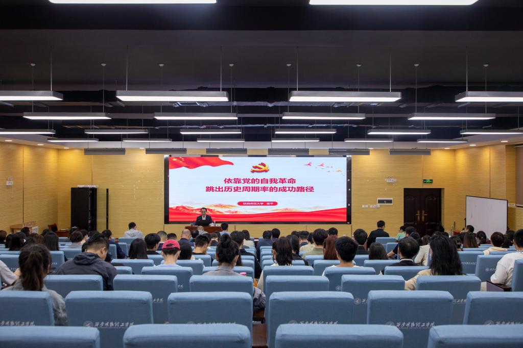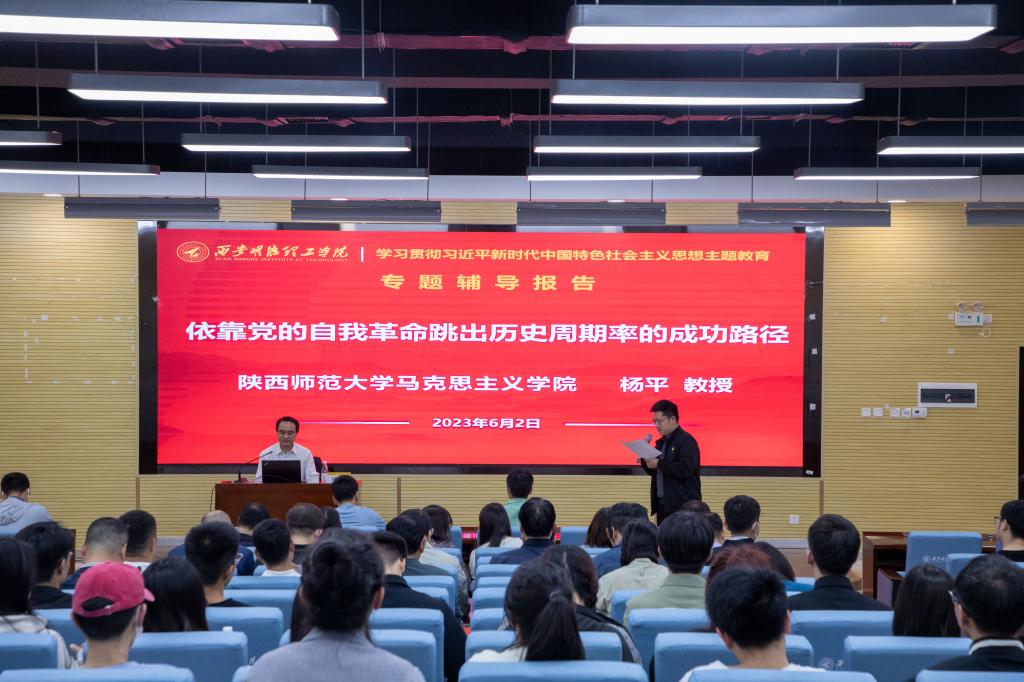 为推动学习贯彻习近平新时代中国特色社会主义思想主题教育走深走实,6月2日下午,学校邀请陕西师范大学马克思主义学院杨平教授作《依靠党的自我革命跳出历史周期率的成功路径》为主题的专题辅导报告。会议由学校党委委员、党委组织宣传部部长高超主持。全体处科级干部、师生代表参加报告会。