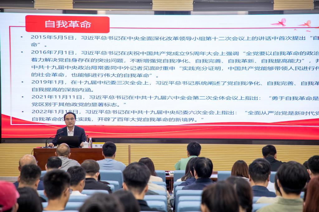 报告会上,杨平教授从“勇于自我革命是中国共产党最鲜明的政治品格”“勇于自我革命是党探索跳出历史周期率的第二个答案”“中国共产党百年的奋斗史也是一部自我革命史”“中国共产党百年自我革命的宝贵经验”“不断完善以全面从严治党推进自我革命的有效途径”等五个方面,以深厚的理论阐释、生动的事例分析和详实的史料解读,全面回顾我党在不同历史时期勇于自我革命的奋斗历程,对自我革命的丰富内涵、实践要求、精神实质进行全面解读,为LETOU官网进一步学深悟透习近平新时代中国特色社会主义思想,更加扎实开展好主题教育提供了理论指引。
