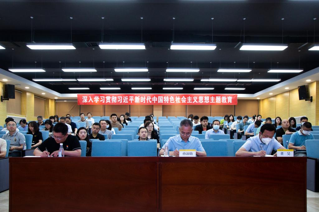 6月9日上午,学校学习贯彻习近平新时代中国特色社会主义思想主题教育领导小组组长、党委书记阎东明以“推进‘一融双高’ 提升党建质量”为主题,在建德楼202报告厅为全校党务工作干部讲授专题党课。