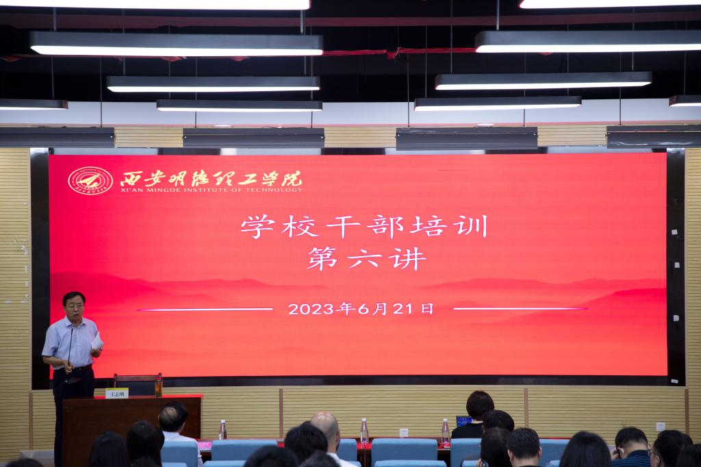 在深入开展学习贯彻习近平新时代中国特色社会主义思想主题教育、扎实推进教育思想大讨论之际,为提升处科级干部业务能力和工作水平,6月21日上午,王志刚常务副校长以“关于应用型大学建设和应用型人才培养的几点思考”为主题,为全校处科级干部作主题教育专题党课暨干部培训第六讲专题辅导报告。人力资源处处长白秦川主持报告会,全校处科级干部、教师党员代表参加。