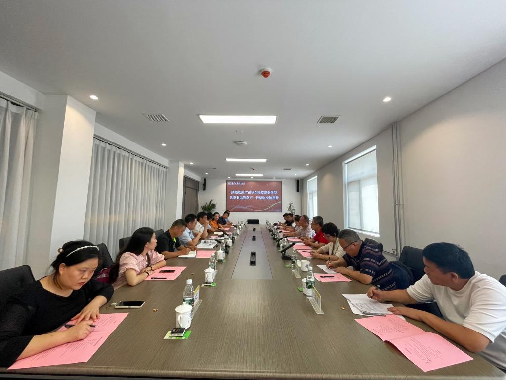 阎东明对陈良声书记一行的到来表示热烈欢迎,并就学校历史发展沿革、机构设置、师资队伍、专业建设、招生就业、组织党建和未来发展规划等情况作了介绍。同时,希望能以此次交流为契机,进一步增强双方的学习交流,在产教融合、校企合作、教师队伍建设、高层次人才引进、协同育人、大学文化建设等方面加大交流力度,共同推进高等教育高质量发展。陈良声书记介绍了广州华立科技职业学院的基本情况。