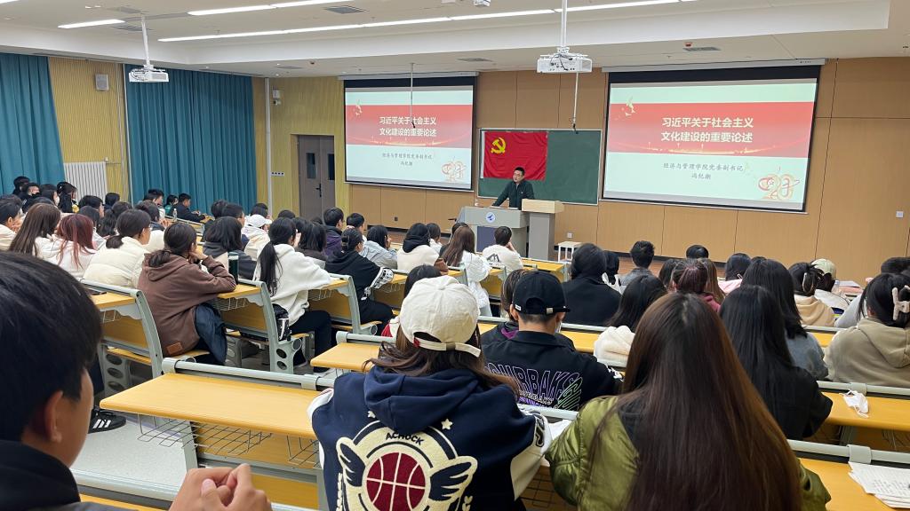 为深入学习宣传贯彻党的二十大精神和习近平文化思想,引导广大青年传承中华优秀传统文化,增强文化自信。经济与管理学院学生第一党支部于11月9日晚在7号教学楼301举办“厚植家国情怀,勇担时代责任”信仰公开课第一讲。经济与管理学院党委副书记冯纪潮担任主讲老师,学院学生党员、发展对象、入党积极分子、学生会干部代表及2023级班团干部代表参加了学习。