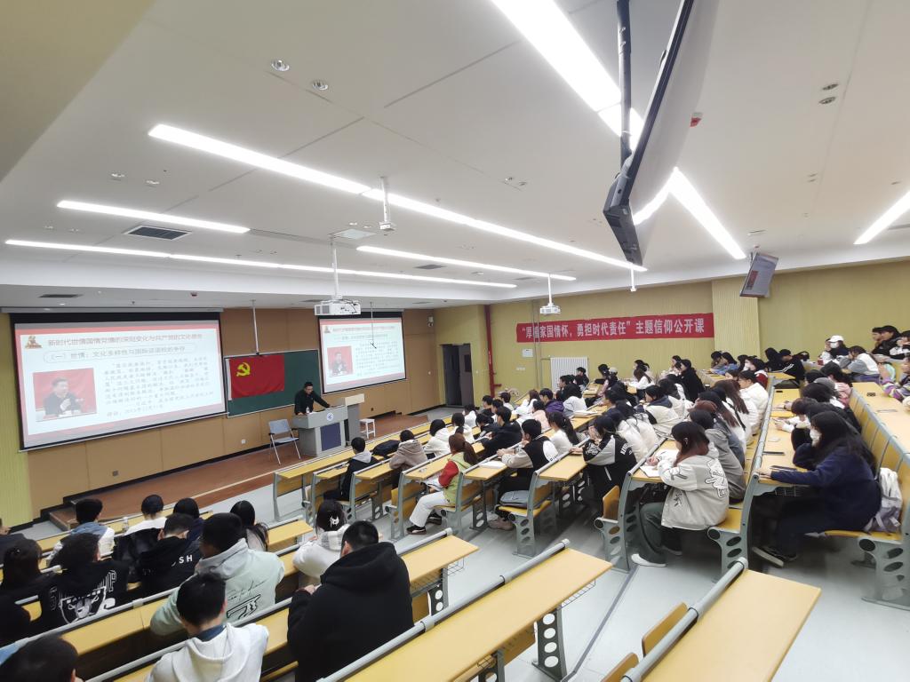 课上,冯纪潮以习近平关于社会主义文化建设的重要论述为题,从新时代世情国情党情的深刻变革与共产党的文化使命、在文化强国建设中铸就社会主义文化新阶段、以文化自信增强中华民族伟大复兴的精神力量等三个方面展开讲述,引导与会学生坚定理想信念,将个人理想追求融入到党和国家的事业中来,自觉成为传承中华文化、弘扬文化的主体,推进文化自信自强。课堂上,同学们认真聆听,收获颇丰。