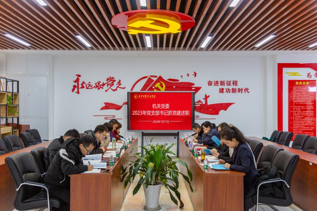 为深入贯彻落实习近平新时代中国特色社会主义思想和党的二十大精神,进一步推动全面从严治党向基层延伸,压实基层党支部书记抓党建第一责任人职责,2024年1月17日,机关党委在明志楼北108召开2023年党支部书记抓党建述职评议,机关党委委员、各支部书记、校纪检监察办公室成员参加会议。会议由机关党委书记高超主持。