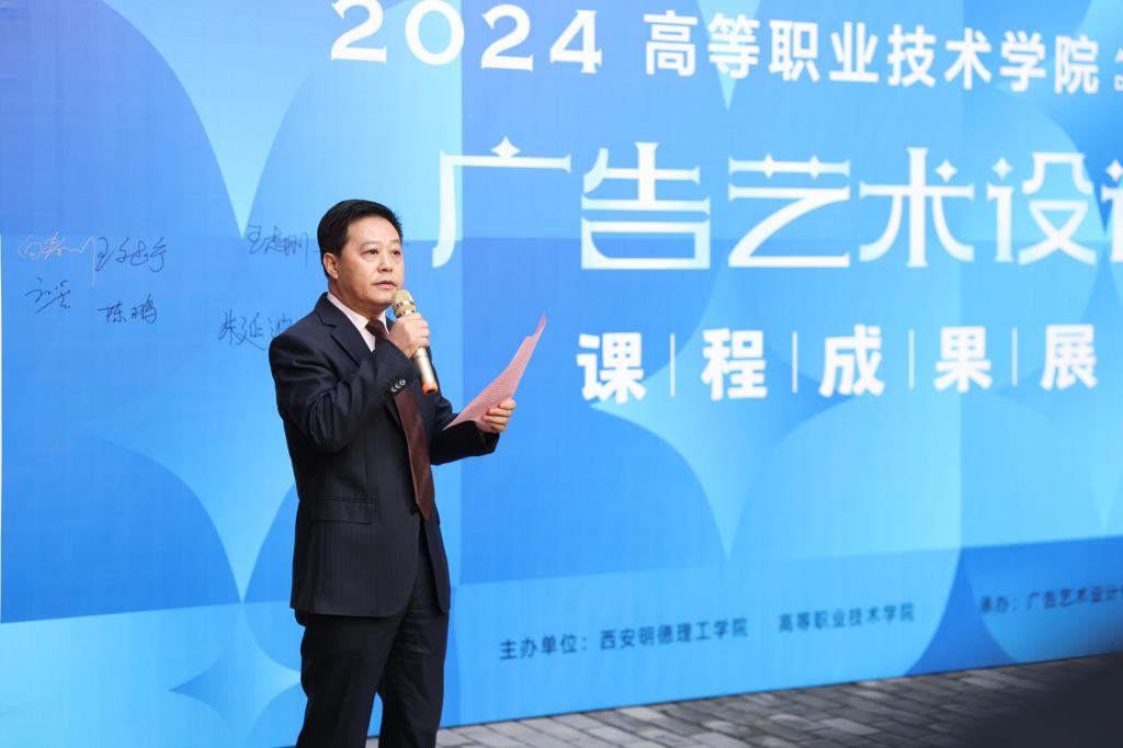 活动伊始,学校财务总监马晓军发表致辞。马总监首先祝贺高等职业技术学院广告艺术设计专业课程成果展迎来盛大开幕,其次对辛勤筹备画展的工作人员表示感谢;随后,马总监充分肯定了高等职业技术学院在过去几年的时间在教育教学方面里取得的突出成绩,并希望高等职业技术学院以本次展览为契机,继续深化艺术设计教育,培养更多具有创新精神和社会责任感的艺术人才。