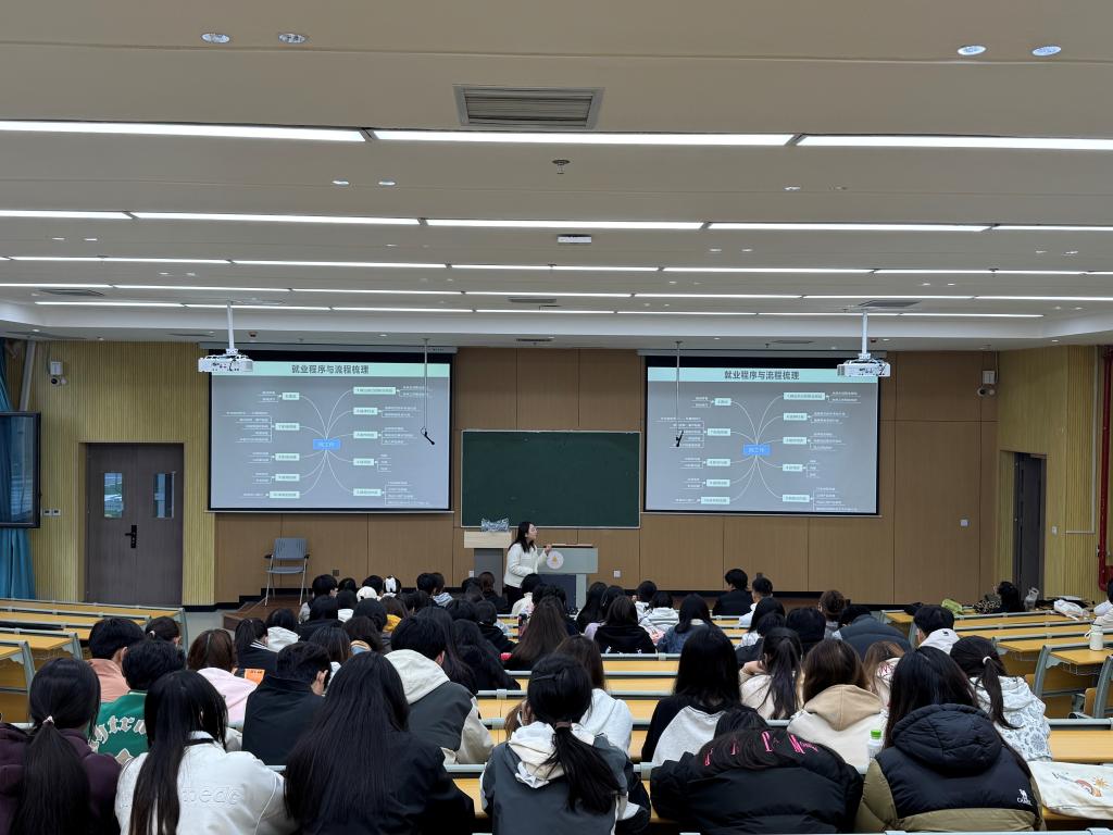 2024年10月30日下午2:30-4:00,一场以“梦想启航-大学生就业市场分析与机遇捕捉”为主题的专题讲座在7号楼101成功举办。本次讲座由高等职业技术学院会计信息管理专业邀请的陕西晶淼企业咨询管理有限公司杨晶总经理主讲,由高等职业技术学院专职教师王栋主持,讲座吸引了众多会计信息管理专业及其他相关专业的学生前来聆听。