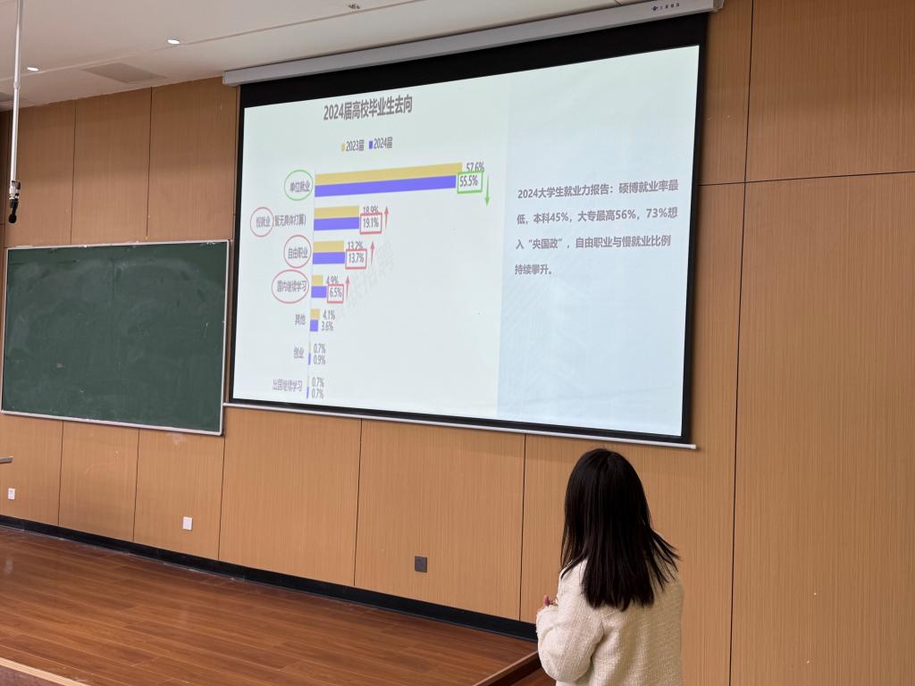 讲座伊始,杨晶总经理首先向同学们介绍了当前大学生就业市场的整体形势,并结合具体数据分析了当前就业市场的机遇与挑战。她指出,随着经济的持续发展和产业结构的不断优化,大学生就业市场呈现出多元化、专业化的特点,但同时也面临着竞争激烈、就业压力增大等问题。针对这些问题,杨晶总经理分享了一系列实用的就业市场机遇捕捉策略。她强调,大学生应该树立正确的就业观念,不仅要关注薪资待遇,更要注重个人职业发展和兴趣爱好的匹配。