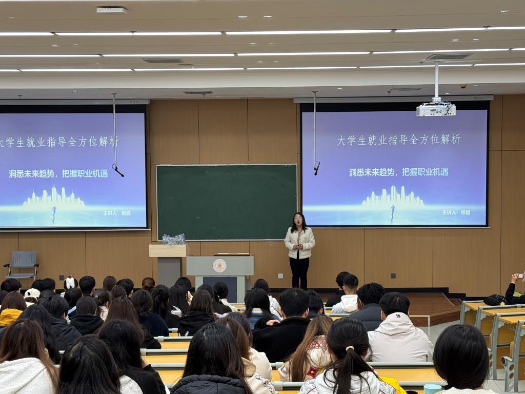 陕西晶淼企业咨询管理有限公司总经理杨晶为高等职业技术学院作“梦想启航-大学生就业市场分析与机遇捕捉”专题讲座