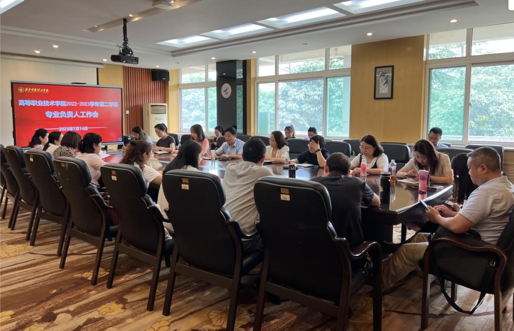 2023年7月14日,高等职业技术学院在1号实训楼216会议室顺利召开专业负责人工作会议。高等职业技术学院院长舒忠、副院长刘喜文、办公室主任陆鹤、全体专业负责人及教学管理人员参加了本次会议。会议由高等职业技术学院副院长于莉主持。