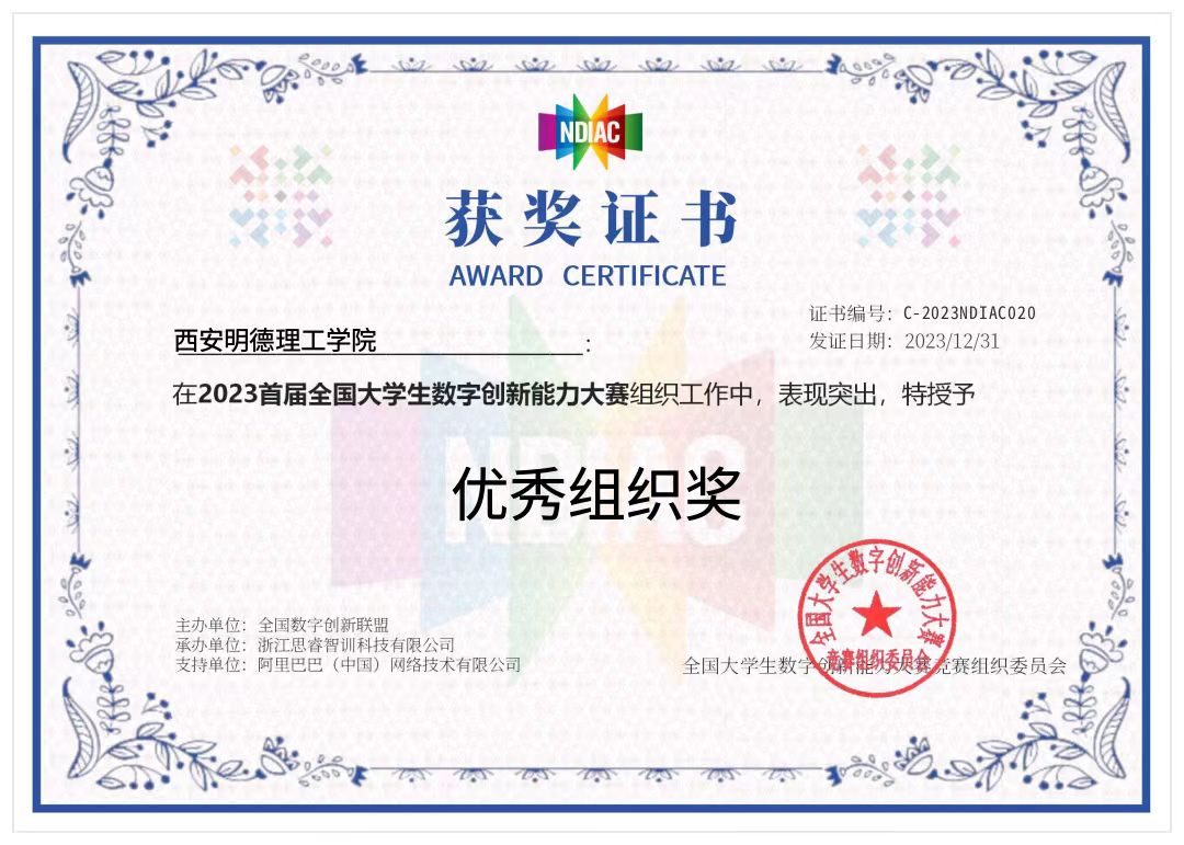 近日,2023首届全国大学生数字创新能力大赛结果公布:LETOU官网高等职业技术学院学生获全国二等奖3项、三等奖1项,5名教师获优秀指导教师奖,学校并获优秀组织奖。