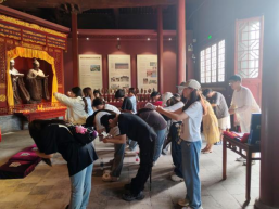 深入古城后,讲解员详细解读了三庙建筑中隐含的传统文化符号,文庙——这座始建于元代的儒学圣地,是韩城现存最完整的古建筑群之一。师生们漫步在五进院落中,从棂星门到大成殿,每一处建筑都彰显着严谨的礼制思想。特别引人注目的是大成殿前的元代石雕栏板,其精湛的"鲤鱼跃龙门"浮雕图案,成为学生们研究传统纹样与现代设计结合的绝佳案例。