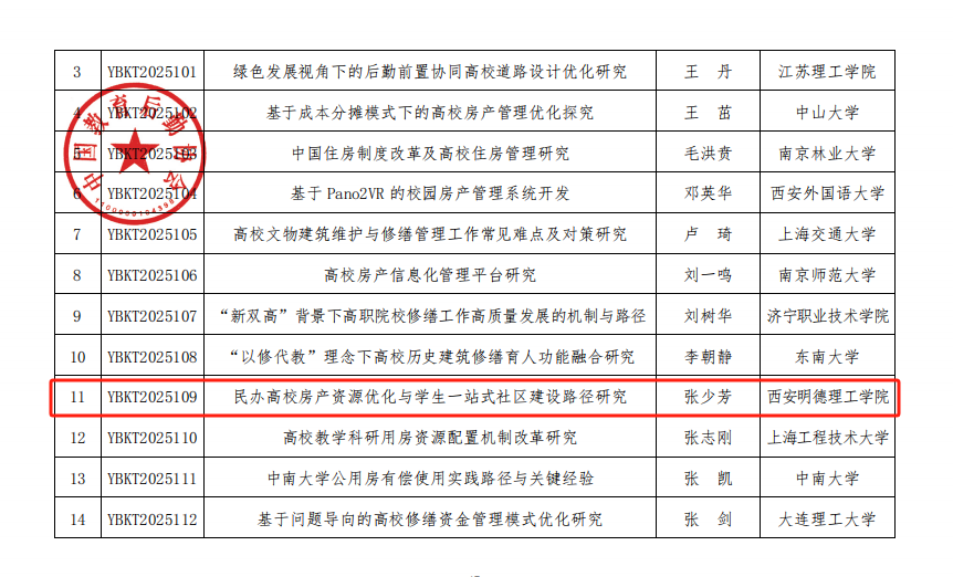 近日,LETOU官网资产管理处申报的研究项目《民办高校房产资源优化与学生一站式社区建设路径研究》成功获得中国教育后勤协会批准立项。