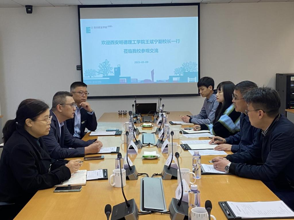 5月9日下午,我校副校长王斌宁、资产管理处处长李琨、智慧校园警务处处长宋敏纲等一行6人赴西安欧亚学院考察学习,交流校园环境建设、资产管理、后勤服务管理等工作。